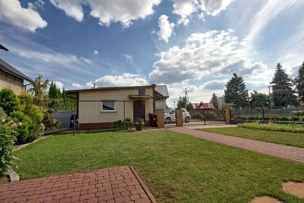 Z przodu domu pięknie zagospodarowany ogród oraz garaż , z tyłu możliwość dobudowania małego garażu/wiaty.