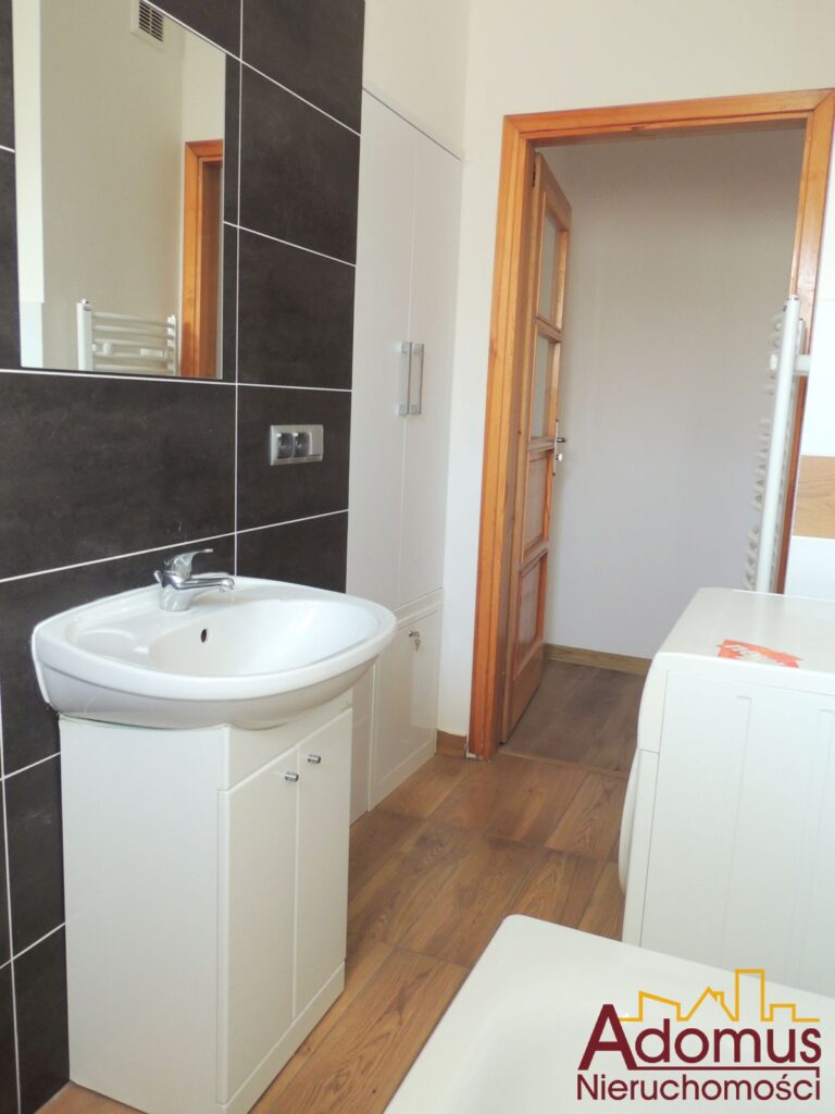 Nowa stolarka okienna pcv z zamontowanymi żaluzjami, na podłodze wysokiej jakości panele oraz terakota. W kuchni meble na wymiar oraz sprzęt AGD: płyta elektryczna, lodówka, piekarnik, okap. W łazience płytki, wanna, umywalka, toaleta.